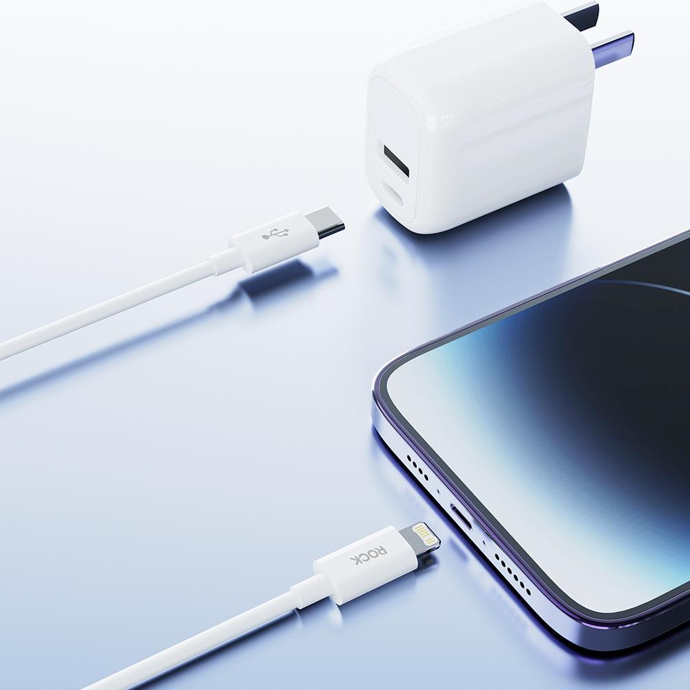 Cáp sạc nhanh C to Lightning ROCK – Simple Series C TO L Fast Charge Data Cable – white ( C to Lightning )